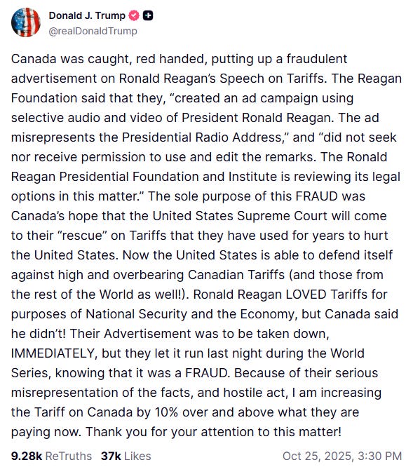 In the end, the ad meant to challenge Trump’s trade logic only confirmed it. It’s leverage, not nostalgia, that shapes the conversation.